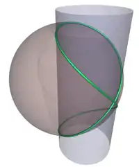 A curva de Viviani como intersecção de uma esfera e um cilindro.