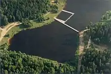 - O reservatório de água Czapielówka está localizado no meio da floresta. Há uma plataforma ali, com uma grade de metal e uma rampa para deficientes.