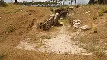 - "Consta de uma galeria que mede cerca de 4,50 metros de comprimento, formada por dois renques de lajes de mediana altura erguidas paralelamente na distância de 1,75 metro, e de uma sala ou câmara poligonal, de cerca de 3 metros de diâmetro, limitada a Norte por cinco lajes que se apoiam umas contra as outras, cujas dimensões são em média de 2,10 metros de altura e 1,30 metro de largura e 0,30 metro de espessura."[3]