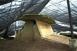 Sob o túmulo conhecido existiu um megálito anterior no tempo, de menor tamanho e complexidade, consistente numa câmara simples, alongada e aberta, composta por nove ortóstatos e dimensões de 240x190 cm. O seu túmulo tinha 10,5 m. de diâmetro e estava coberto por uma couraça de uma só camada de pedras.