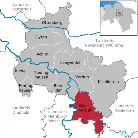 | Localização de Dörverden no distrito de Verden | |