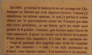 - Il s'agit d'une édition posthume (décès de Germaine de Staël en 1817) non accessible en version numérisée (cf. Page de discussion)