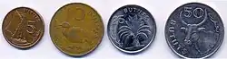 Em 1971, moedas com as denominações de 1, 5, 10, 25 e 50 bututs e 1 dalasi foram introduzidas. O desenho do reverso das três moedas de valor mais elevado foram aproveitados das moedas da denominação anterior.