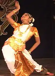 A dança (do francês: "danse" ou "dancier"; do grego: "ορχήομαι", romaniz. "orchḗomai": "danzare") é a arte de fazer movimentos ritmados com o corpo.[1] É uma expressão artística e cênica que envolvem os movimentos corporais em sua relação com diferentes estilos musicais. É o uso do corpo seguindo movimentos previamente estabelecidos (coreografia) ou improvisados (dança livre),[2] com passos ritmados ao som e compasso de uma música, envolvendo a expressão de sentimentos potenciados por ela. É uma das três principais artes cênicas da antiguidade, ao lado do teatro e da música, pois no antigo Egito existia danças astro-teológicas e na Grécia era frequentemente vinculada aos jogos.[3]