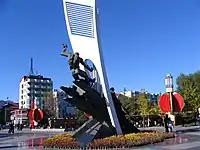 ![]() Vista do horizonte de Dandong no Rio Yalu | ||||