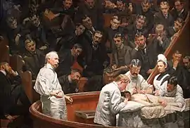 The Agnew Clinic é uma pintura de 1889 de Thomas Eakins que retrata Agnew realizando uma operação de mastectomia diante de uma galeria de estudantes e médicos. Em 1889, os estudantes da Escola de Medicina da Universidade da Pensilvânia encomendaram a Eakins para fazer um retrato do professor de cirurgia aposentado Dr. D. Hayes Agnew. Trabalhando dia e noite, Eakins completou a pintura em três meses, a tempo de ser apresentada no início do ano letivo da Universidade em 1 de maio de 1889.[6]
