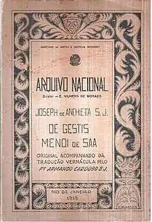 - ANCHIETA, José de (S.J.). De Gestis Mendi de Saa (original companhado da tradução vernácula pelo padre jesuíta Armando Cardoso). Rio de Janeiro: Arquivo Nacional, 1958. 256p. il.