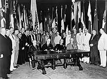 - A Conferência das Nações Unidas sobre Organização Internacional de 1945 resultou na criação da Carta das Nações Unidas