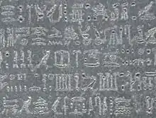 - Terceiro texto, parcial com linhas de hieróglifos (agora no Louvre).