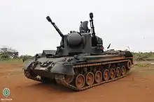 34 viaturas antiaéreas autopropulsadas Flakpanzer Gepard 1A2 foram encomendadas para o Exército em 2013. Este lote, originalmente do Exército Alemão, havia sido remodelado pouco antes, com vida útil prevista até 2030. Armado com canhões 35 mm Oerlikon, o Gepard foi concebido para acompanhar e proteger colunas de carros de combate Leopard 1, justamente o tipo usado pelo Exército Brasileiro. No caso, não houve transferência tecnológica para a indústria brasileira, apenas compra de equipamentos.[101][95] No conflito Rússia-Ucrânia, o Gepard ainda se revela útil no campo de batalha contemporâneo, abatendo diversas ameaças áereas, notavelmente os drones. Entretanto, já existem ameaças aéreas com armamentos de alcances superiores ao do Gepard (quatro quilômetros), e portanto, capacidade de standoff contra forças protegidas por este veículo.[29]