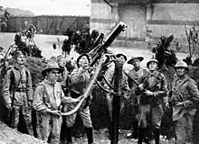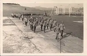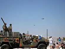 Em terra, metralhadoras Hotchkiss, Schwarzlose e outras, adaptadas em pedestais com giro de 360°, serviram de defesa antiaérea nas revoluções de 1930 e 1932. O Exército só criou sua primeira unidade de artilharia antiaérea em 1938,[82][83][lower-alpha 1] uma adoção tardia se comparada aos exércitos europeus.[84] Esse ramo já se mostrava promissor desde a Primeira Guerra Mundial (1914–1918),[83] e em 1934 já se constatava que o Exército Argentino tinha um grupo de artilharia antiaérea, enquanto o Exército Brasileiro não tinha nenhum canhão para esse fim.[lower-alpha 2]