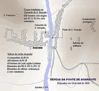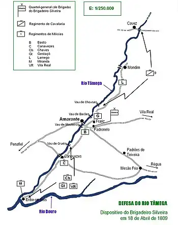 Com este dispositivo, Silveira pretendia impedir que os Franceses se apoderassem de pontes ou vaus que permitissem a passagem das suas tropas para a margem oriental do Tâmega, em especial a Ponte de S. Gonçalo em Amarante porque servia a principal estrada na região. Os franceses fizeram várias tentativas para passar o Tâmega em vários pontos, sem sucesso. No dia 21 de Abril conseguiram desalojar os defensores do Convento de S. Gonçalo. A 23 de Abril foi feita uma tentativa, infrutífera, de lançar uma ponte de cavaletes junto de uma represa a jusante de Amarante.[20]