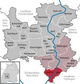 | Localização de Deißlingen no distrito de Rottweil | |