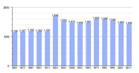 | Variação demográfica do município entre 1861 e 2011[3] |