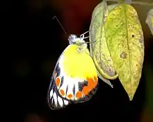 Delias periboea é uma borboleta da família Pieridae. Foi descrita por Jean-Baptiste Godart em 1819. Ela é encontrada tanto no reino Indomalaio quanto no reino da Australásia, ou seja, a leste e oeste da linha Wallace.[2] A envergadura é de cerca de 62-74 milímetros. Os adultos têm manchas submarginais brancas nas asas superiores e há uma minúscula mancha subcelular vermelha na parte inferior das asas posteriores, que raramente está ausente.[3]