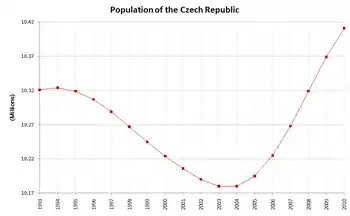 - checos 90%, morávios 3.7%, eslovacos 1.9%, polacos 0.5%, austríacos 0.4%, alemães 0.4%, silésios 0.1%, ciganos 0.1% (valores oficiais, extimativas não-oficiais chegam a 2%), húngaros 0.1%, outros 2.8% (março de 2001)