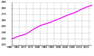 A esperança média de vida é de 72 anos para os homens e 77 anos para as mulheres. Barbados e Japão têm os mais altos por ocorrências capita de centenários no mundo