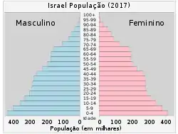 Em 2024, a população do Estado de Israel era de 9 848 480 pessoas.[1] Ao menos 73% da população são judeus israelenses de diferentes etnias (ou aproximadamente 7,1 milhões de indivíduos), 21% são árabes de diferentes religiões que não sejam o judaísmo (ou aproximadamente 2 milhões de pessoas), enquanto 5,7% (ou aproximadamente 558 000 indivíduos) se definem como "outros", que incluem pessoas etnicamente judias mas que são consideradas "não judeus" por leis religiosas, cidadãos que não se identificam como judeus (embora possam ser descendente destes), cristãos não-árabes, muçulmanos não árabes e indivíduos que não se classificam por religião ou etnia.[1][2]