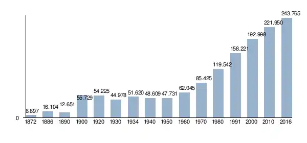 Em 1874 a cidade possuía 6.897 habitantes; em 1881, aproximadamente 10 mil habitantes. Com o começo da imigração italiana em 1886, a população chegou a 16.104 habitantes (tendo 1050 imigrantes italianos, ou 6,5% da população total[24]) e, no fim do século, em 1899, contabilizava 10.396 imigrantes italianos, sendo a segunda maior imigração do estado. Por isso, era conhecida na Itália como "Piccola Italia".[25]