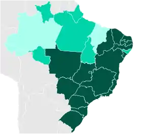 | Região | Estados | Municípios | População (2022)[5] | % |
