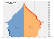 A razão de sexo no país é de 94,2 homens para cada grupo de 100 mulheres,[9] conforme estimativas do Censo Demográfico de 2022.