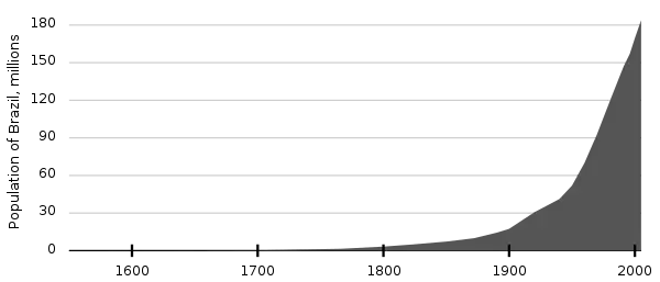 Ao longo das últimas quatro décadas, o crescimento demográfico do Brasil tem desacelerado rapidamente. Em 1940, o recenseamento indicava 41 236 315 habitantes; em 1950, 51 944 397 habitantes; em 1960, 70 070 457 habitantes; em 1970, 93 139 037 habitantes; em 1980, 119 002 706 habitantes; em 1991, 146 825 475 habitantes; em 2000, 169 590 693; em 2010, 190 755 799 habitantes; e em 2022, 203 080 756 habitantes. Em 50 anos, a população brasileira dobrou em relação aos 90 milhões de habitantes da década de 1970. Mas o envelhecimento da população está se acentuando: em 2020, o grupo de 0 a 14 anos representava 20% da população brasileira, enquanto os maiores de 65 anos eram 10%; em 2050, os dois grupos se igualarão em 18%. Segundo a Revisão 2008 da Projeção de População do IBGE, a partir de 2039, o número de brasileiros vai começar a declinar.[8]
