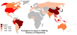 De acordo com o centro de imigração do Japão, o número de residentes estrangeiros no Japão tem aumentado, enquanto o número de estrangeiros, excluídos os imigrantes ilegais e turistas que permanecem no país por menos de 90 dias, foram mais de 2,2 milhões de pessoas em 2008.[5]