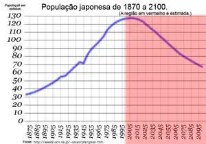 A população japonesa, segundo dados de fevereiro de 2023, foi estimada em 124 631 000[1] com o Japão sendo, atualmente, o décimo-primeiro país mais povoado do mundo.[2] Seu tamanho foi atribuído às altas taxas de crescimento que ocorreram durante o final do século XIX e começo do século XX. Porém recentemente o crescimento populacional vem se reduzindo devido a fatores como a baixa fertilidade e o baixo número de imigrantes. Segundo estimativas a população japonesa pode diminuir a 100 milhões em 2050, e 64 milhões em 2100. Se prevê que uns dos principais problemas que esta redução trará será um déficit financeiro devido ao aumento de dependências pelo elevado número de idosos e a diminuição da quantidade de jovens capacitados a trabalhar.