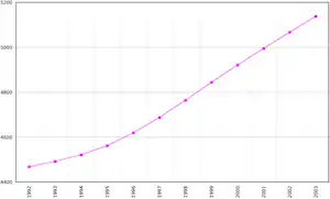 O crescimento demográfico é positivo (1,4%), taxa de fecundidade é de 2,6 filho por mulher, ranking no IDH 110° , a expectativa de vida está acima da média mundial 68,2 anos e a densidade populacional é relativamente, baixa 25,3 hab./km². Os centros urbanos mais povoados se localizam nos vales fluviais como Bisqueque (669 000 hab.),Osh (219 000 hab.), Jalal-Abad (74 200 hab.) e Tokmok (71 200 hab.).