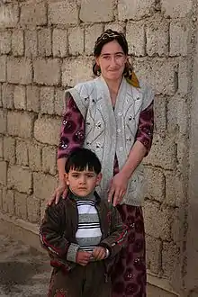 Mulher tajique e seu filho.