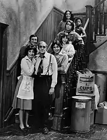 Elenco da série de TV Fish (1977), de cima para baixo: Sarah Natoli, Todd Bridges, John Cassisi, Denise Miller, Lenny Barry, Barry Gordon, Florence Stanley, Abe Vigoda