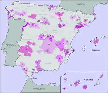 Em 2007, a Espanha tinha 134 regiões vinícolas reconhecidas por meio de denominações de origem. A hierarquia das denominações espanholas de vinhos é a seguinte: