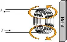 Imagine uma bobina enrolada no entorno de um material ferromagnético. A partir do momento que flui corrente no fio, um campo magnético passa a circular ao redor deste (veja figura ao lado). Uma bobina é uma forma de se concentrar campo magnético. Uma vez aplicado o campo magnético dá-se origem à indução magnética (ou densidade de fluxo magnético) . Associada à indução magnética está o fluxo magnético dado por [1][2] onde é a área que as linhas de fluxo atravessam.´