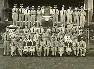 G. E. Douglas (fila da frente, no centro) com oficiais e um B-24 Liberator do Depósito de Aeronaves N.º 3, em Julho de 1945
