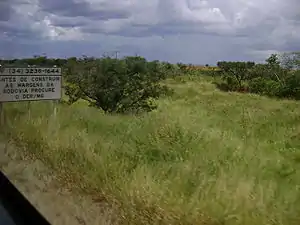 Placa da DER ao lado da rodovia BR-452, em Minas Gerais.