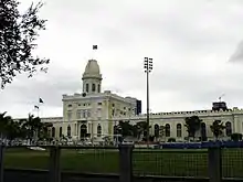 A residência oficial de Arraes foi vigiada desde o dia 29 de março.[37] Durante o golpe os acessos à capital foram controlados pelo Exército, que às 05:00 de 1º de abril tinha presença ostensiva pela cidade. Ao mesmo tempo, uma companhia[lower-alpha 3] da Polícia Militar, sob o capitão Domingos Siqueira Campos, defendia o palácio governamental “com numerosas patrulhas e ninhos de metralhadora”, “fortemente armada, protegida por obstáculos“.[38][39] O Quarto Exército designou partes do 14º RI, do coronel João Dutra de Castilho, 1º/7º RO, do tenente-coronel Ivan Ruy Andrade de Oliveira, 7ª Companhia de Polícia do Exército e Esquadrão de Reconhecimento Mecanizado para cercar o palácio.[38][40] O 3º Distrito Naval deveria contribuir forças, mas elas não compareceram.[41] Porém, apesar da boa relação até então existente entre Arraes e o almirante Dias Fernandes, os fuzileiros navais não acudiram ao governador. Sediados no bairro do Recife, tinham armamento superior (FAL) aos mosquetões do Exército.[42]