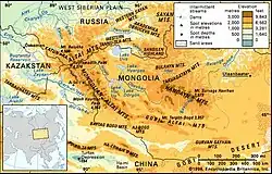 Está limitada pelos montes Altai (oeste), montes Kanghai (leste) e montes Tannu-Ola (norte).[1] Possui uma extensão de norte a sul de 500 km e leste a oeste de 400 km. Possui uma área de mais de 100.000 km² e elevações que vão desde os 758 m até os 2.000 m. Na parte norte da bacia, existe uma pequena cordilheira, Khan Huhiyn-Nuruu, que separa a bacia do lago Uvs do resto da bacia.