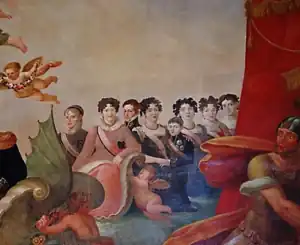 ![]() O Feliz Regresso de Sua Majestade Fidelíssima o Senhor Rei D. João VI do Rio de Janeiro para a Cidade de Lisboa, em 4 de Julho de 1821 (Fuschini, 1825.) ![]() Casa de Bragança Família real portuguesa Família imperial brasileira |