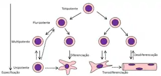 A desdiferenciação de células de mamíferos pode ser feita artificialmente, gerando células-tronco de pluripotência induzida (IPSc). Este processo, descoberto por Kazutoshi Takahashi e Shinya Yamanaka a partir de fibroblastos de camundongo, é realizado a partir de culturas de células num meio contendo fatores de transcrição. Somente quatro fatores de transcrição, os fatores de Yamanaka (Oct-3/4, Sox2, c-Myc e KLF4) são suficientes para que ocorra a reprogramação. Poucas células do meio se tornam de fato reprogramadas.[22] O c-Myc pode ser substituído por moléculas específicas de microRNAs (miR-294 e miR-295), que são importantes durante a reprogramação de diversas linhagens de células somáticas.[23][24]
