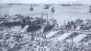 ![]() Desembarque de tropas e equipamentos espanhóis no Marrocos. | |||