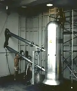 Onze anos mais tarde, os desenhos de implosão tinham avançado suficientemente para que a esfera de 1,5 m de diâmetro do engenho Fat Man tivesse sido reduzida para um cilindro de 30 cm de diâmetro e 60 cm de comprimento, no caso do engenho Swan.