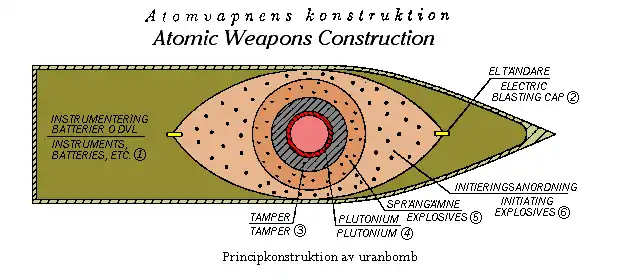 - Nuclear Weapons FAQ: 4.1.6.3 Hybrid Assembly Techniques (em inglês), acedido em 20 de Agosto de 2007. Desenho adaptado da mesma fonte.
