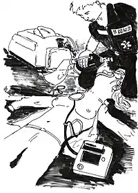 Desfibriladores externos manuais requerem a experiência de um profissional de saúde.[1][2] Eles são usados em conjunto com um eletrocardiograma, que pode ser separado ou embutido.
