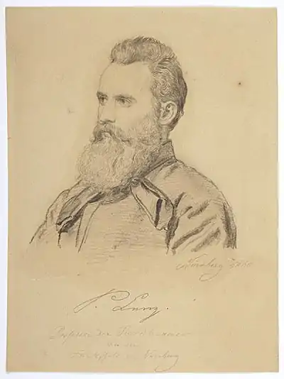 Peter Lenz nasceu em 1832 em Haigerloch, Baden-Württemberg. A partir de 1849 estudou na Academia de Belas Artes de Munique como aluno do pintor e escultor Max von Widnmann e do muralista Wilhelm von Kaulbach, onde aprendeu sobre arte grega antiga, pintura medieval alemã e artistas da Renascença italiana. Em 1851, juntou-se à União de Alunos Artistas na Academia e conheceu Jakob Wüger. Apesar de possuírem personalidades diferentes, os dois se tornaram amigos e trabalharam juntos.[2]