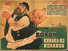 Isso marcaria o início da "grande cruzada contra os especuladores do pão, os kulaks, os devoradores do mundo, ... a última e decisiva batalha contra todos os kulaks - exploradores"[6]