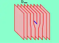 Em ciência dos materiais, um deslocamento, deslocação ou discordância é um defeito ou irregularidade na estrutura cristalina. A presença de deslocamentos influencia fortemente muitas das propriedades dos materiais. A teoria foi originalmente desenvolvida por Vito Volterra em 1905. Alguns tipos de deslocamentos podem ser visualizados como sendo causados pelo término de um plano de átomos no meio de um cristal. Nesse caso, os planos não são retos, mas sim dobrados em torno da borda do plano em terminação de maneira que a estrutura de cristal está perfeitamente ordenada em ambos os lados. A analogia com uma pilha de papel é oportuna: se uma meia folha de papel é inserida em uma pilha de papel, o defeito na pilha só é percebido na beira da metade da folha.