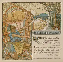 O mesmo conceito é encontrado na fábula Hércules e o Carroceiro, registrada pela primeira vez por Babrio no século I. Nela, uma carroça cai em um barranco (ou, em versões posteriores, atola na lama) e, quando o seu dono apela para Hercules em busca de ajuda, este lhe responde para que trabalhe por si mesmo.[7] Esopo é creditado com uma fábula semelhante, sobre um homem que pede ajuda à deusa Athena quando seu navio naufraga, e que é aconselhado por ela a primeiro tentar nadar por si mesmo.[8] Especula-se que ambas as histórias foram criadas para ilustrar um provérbio já existente.[9]
