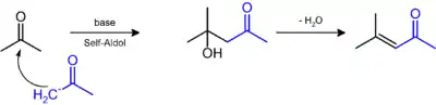Submete-se à desidratação para dar cetonas α,β-insaturadas, óxido de mesitila:[4] A hidrogenação de óxido de mesitila dá o solvente industrial, metil isobutil cetona ("MIBK").