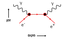 A aniquilação deste par também pode resultar na produção de fótons reais. Para conservar energia e momento, dois fótons são produzidos, embora seja possível gerar três fótons também.[1] Neste caso, o diagrama de Feynman mostra dois fótons saindo do diagrama.