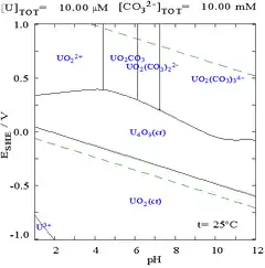 Em geral os diagramas representam o equilíbrio entre as espécies calculado para o valor unitário de atividade, ou seja na concentração 1M, mas, dependendo do sistema químico em questão, linhas adicionais paralelas podem ser utilizadas para representar outras concentrações, como, por exemplo, 10−3 M or 10−6 M. As alterações nas linhas de equilíbrio, conforme a concentração ou a temperatura, são devidas às alterações deduzidas pela equação de Nernst. Adicionalmente, as interações com outros componentes, tais como a formação de complexos metálicos (ligantes), podem modificar o diagrama. Um exemplo é o efeito dos carbonatos no diagrama do urânio (diagramas à direita).